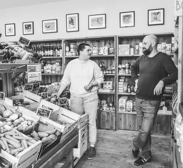 chez nous, chaque aliment a son histoire à raconter : celle de la terre, du savoir-faire, des mains qui l’ont cultivé. On aime partager ces récits, parce qu’ils donnent du sens à ce que l’on mange et rapprochent les gens. Le bien-être des producteurs compte autant que la qualité des produits, et c’est cette attention, simple et sincère, qui fait vibrer l’Épicerie du Coing.